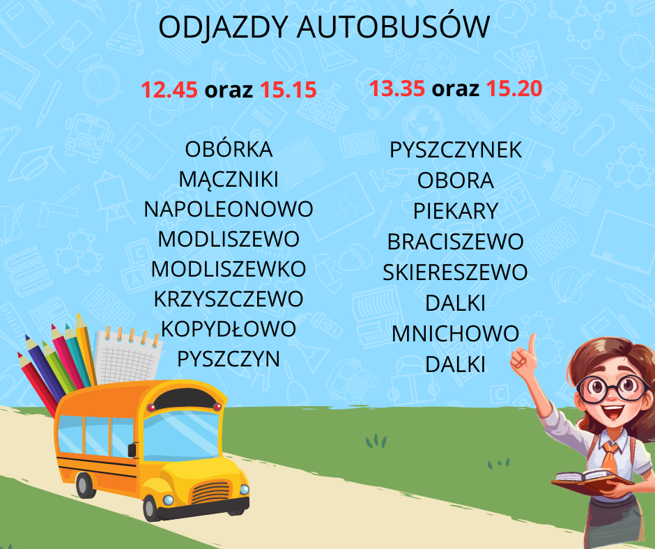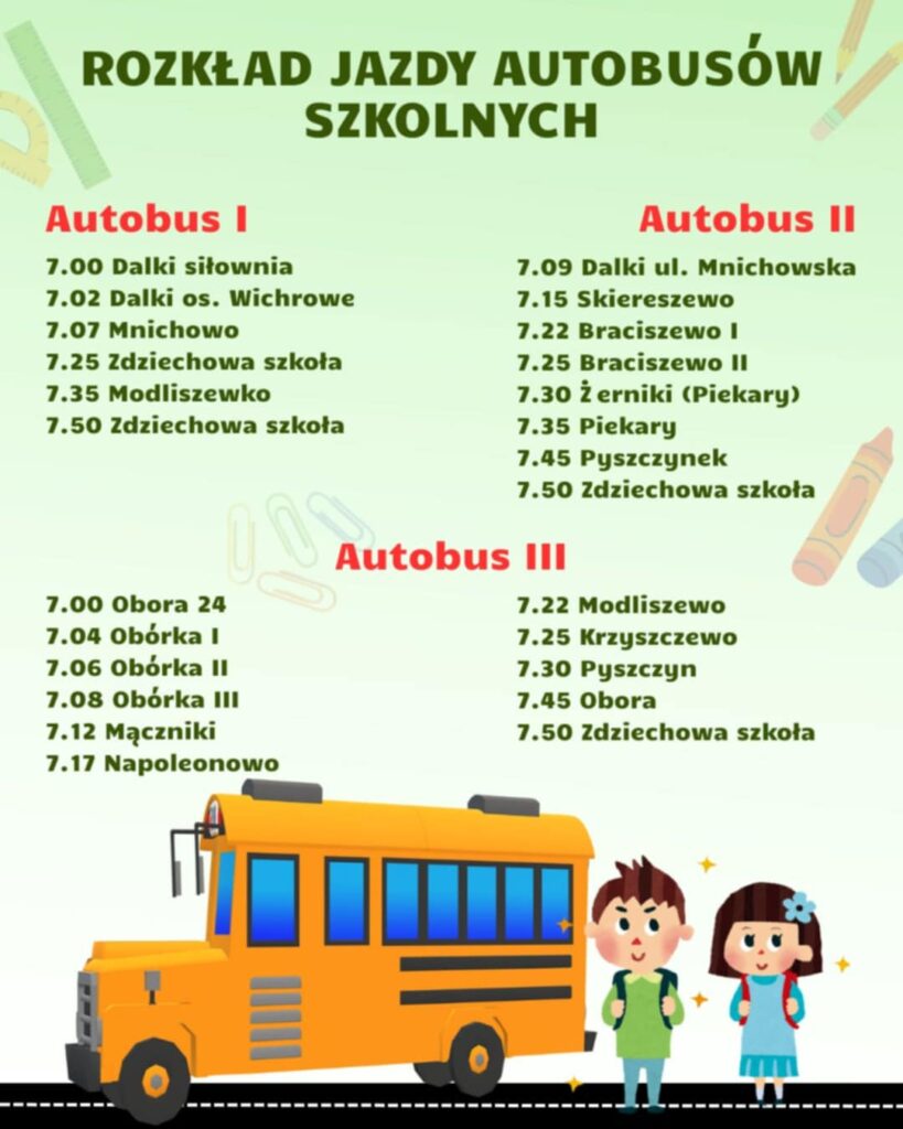 Przewoźnik informuje, że poranne kursy autobusów – ze względu na trudne warunki atmosferyczne, będą opóźnione o godzinę.
